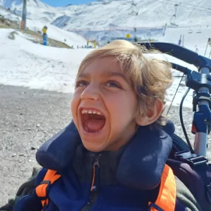 Además de ser muy muy mimoso, me encanta pasear, las luces de colores, las palizas de cosquillas, montar a caballo, bañarme en el mar o la piscina, los baños de espuma, viajar, el zoo, ir al cine, esquiar… Soy muy feliz porque recibo lo máximo de mi hermano y mis padres que hacen que todas las barreras se minimicen.